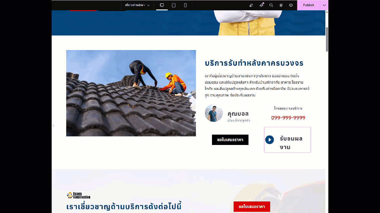 ตัวอย่างเว็บไซต์ บริการทำหลังคา
