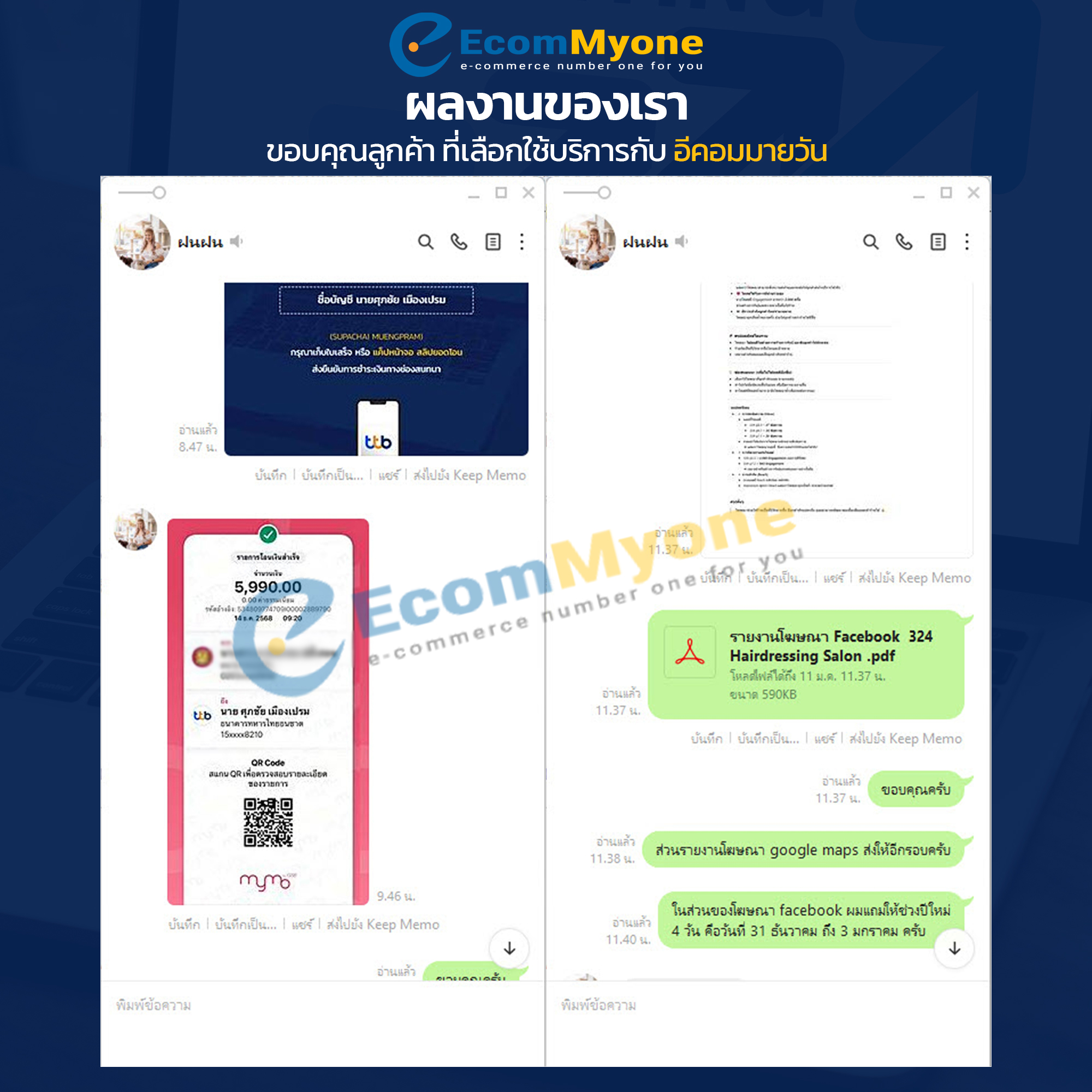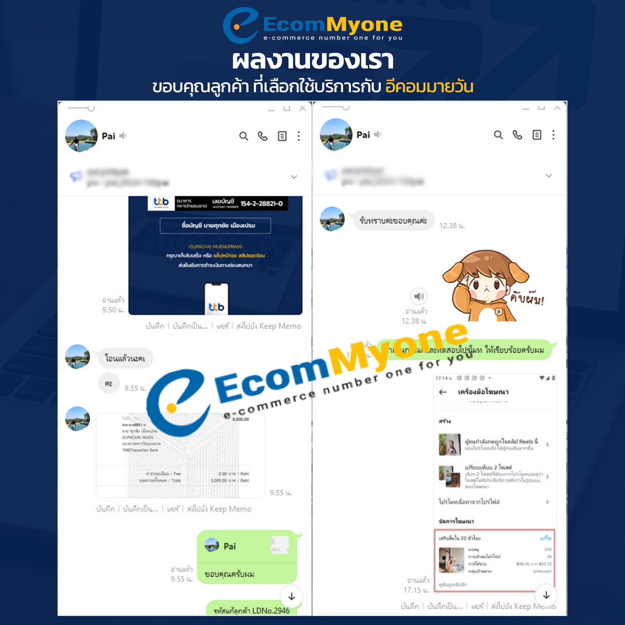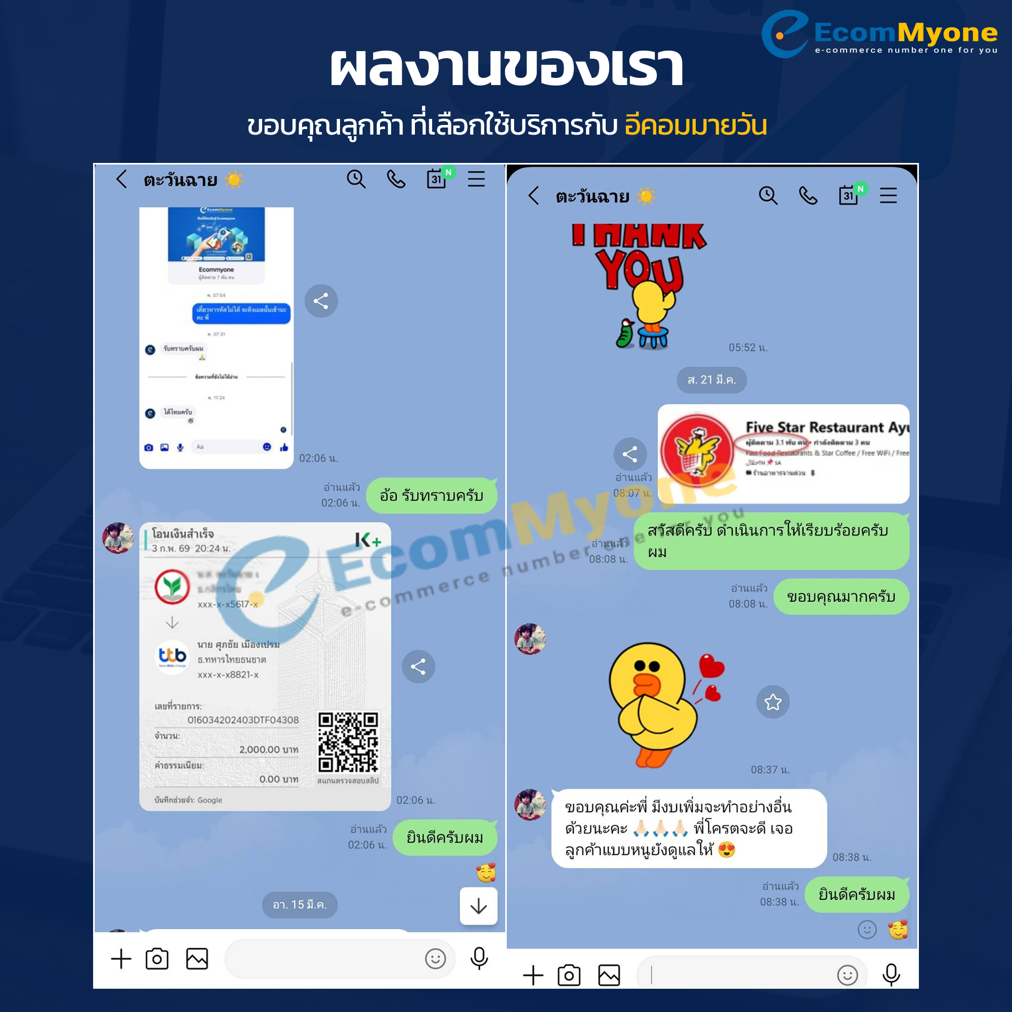 Home ผลงานของเรา Ecommyone Review ผลงานบริการของเรา ขอบคุณเจ้าของธุรกิจทุกท่าน ที่มอบความไว้วางใจ ใช้บริการกับ Ecommyone ดูรีวิวเพิ่มเติม
