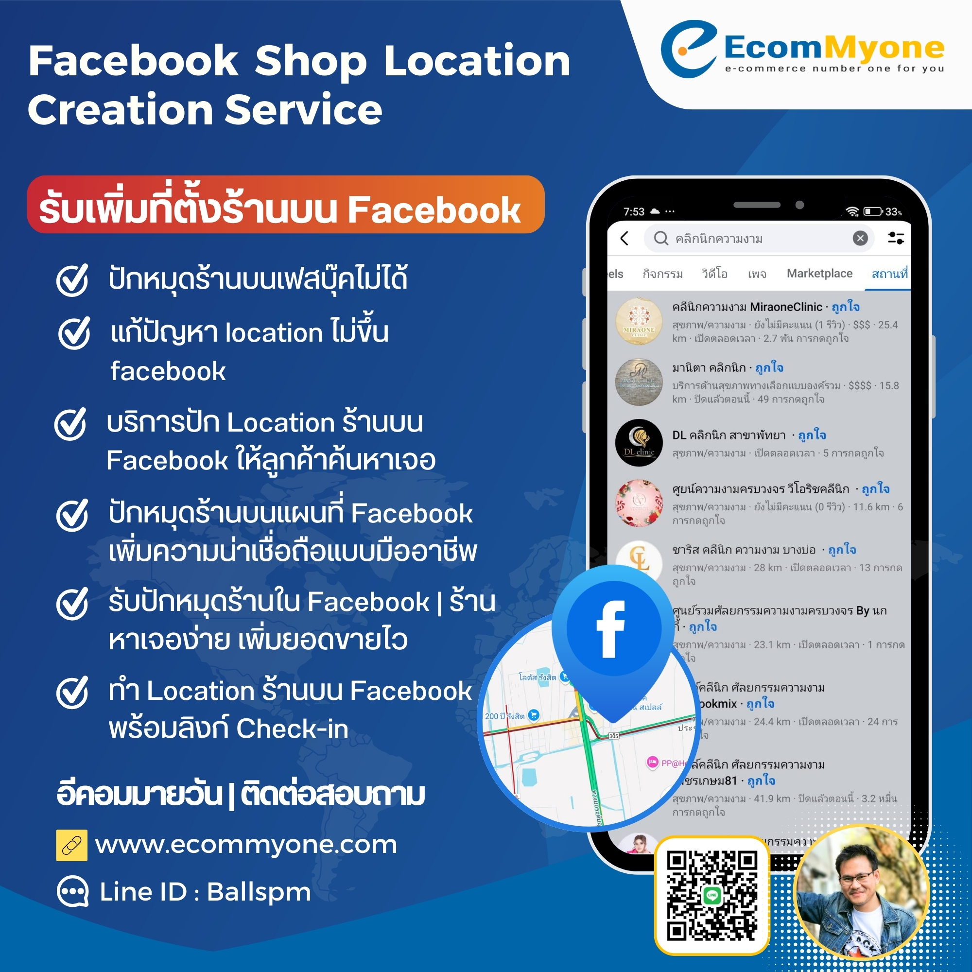 หากคุณอยากให้ลูกค้าค้นหาร้านเจอบน Facebook ได้ง่ายขึ้น และเพิ่มความน่าเชื่อถือให้ธุรกิจ บริการรับปักหมุด Facebook จาก Ecommyone คือคำตอบ เราจะช่วยคุณสร้างโลเคชั่นใหม่ ปักหมุดร้าน และเพิ่มจุดเช็คอินอย่างถูกต้อง